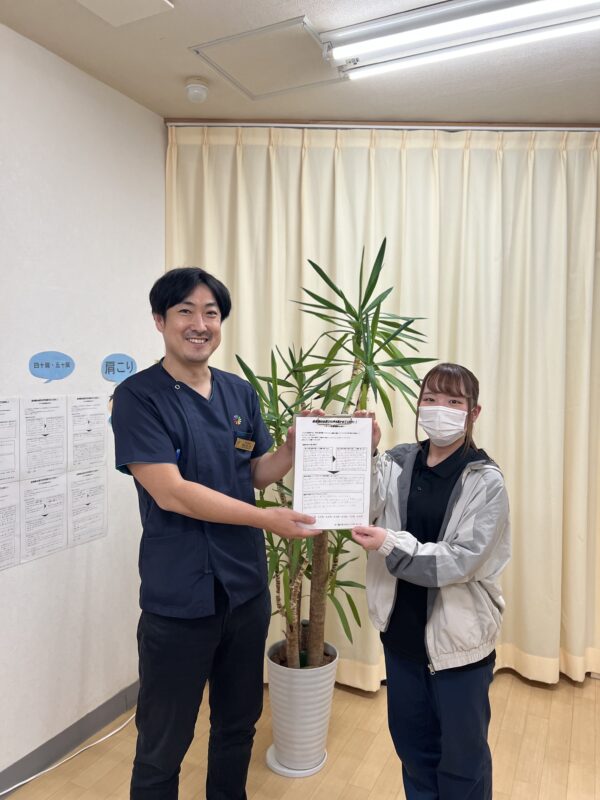 また、施術だけでなく、日常生活で気をつける点やご自身で取り組めるケアについても丁寧に案内されており、患者様が自分の身体と向き合うためのサポートがよく整っていると感じています。