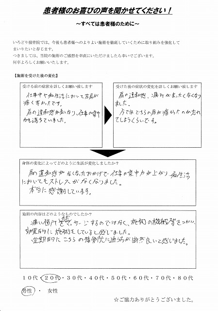 施術前よりも自分の身体を大切にする意識が強まったと思います。