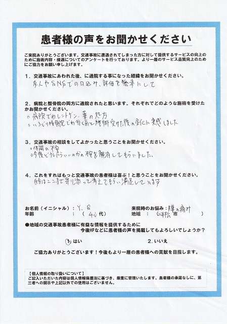 Y.S様 40代 二本松市 交通事故施術・腰痛