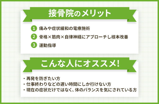 また、当院では症状の解消だけではなく、体全体のバランスを見て原因を追及するため、体全体の不調を取り除くことができます。自然治癒力を高める施術なので、薬などに頼らず体への負担も少ない施術です。