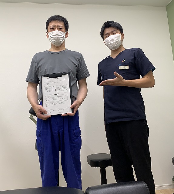1ヵ月程経った頃、猫背気味の姿勢だったのが、ややまっすぐになり、肩・膝の痛みは治まっていた。