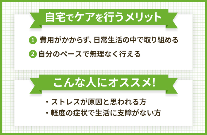 院長の岩﨑 渉は「本当に患者様を良くする治療とは何か」を追求し続けています。セルフケアとして、食事の見直しを行い、消化に良いものを選び、食事の間隔を空ける、深呼吸や瞑想で自律神経を整える、半身浴で体を温め血行を促進するなどがあります。自分のペースで無理なく続けることができます。一方で、セルフケアでは効果が現れるまで時間がかかる場合があります。当院では、患者様の生活スタイルに合わせた具体的なセルフケア方法を詳しく指導いたします。
