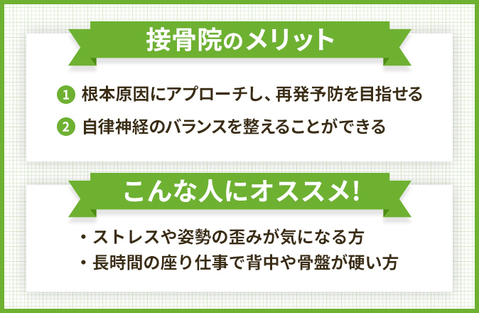 病院では、薬物療法として胃酸分泌抑制薬や消化管運動改善薬の処方など、医師の診断のもと適切なケアを受けられます。また、カウンセリング、ストレスケアのための精神科や心療内科への紹介も可能です。一方で、薬物療法が主になるため、副作用が出る可能性があります。当院では、医療機関での治療と並行して、根本的な身体の改善を目指した施術を提供し、薬に頼りすぎない体づくりをサポートいたします。