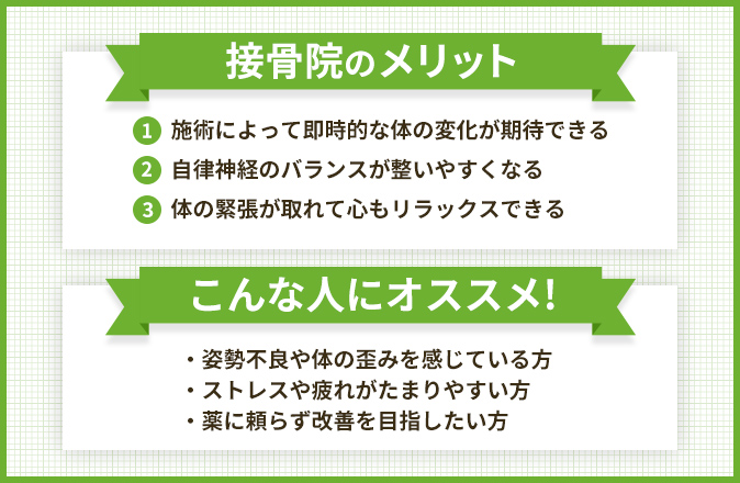 接骨院治療では、骨格・姿勢調整による血流改善、筋肉の緊張をほぐすことで自律神経を整え、体のバランスを整えるストレッチ指導などが行われます。しかし、診断や医療行為はできず、内科疾患は対応できません。