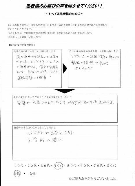 S.Y様 70代 女性 頚椎症性神経症・坐骨神経痛 クリック