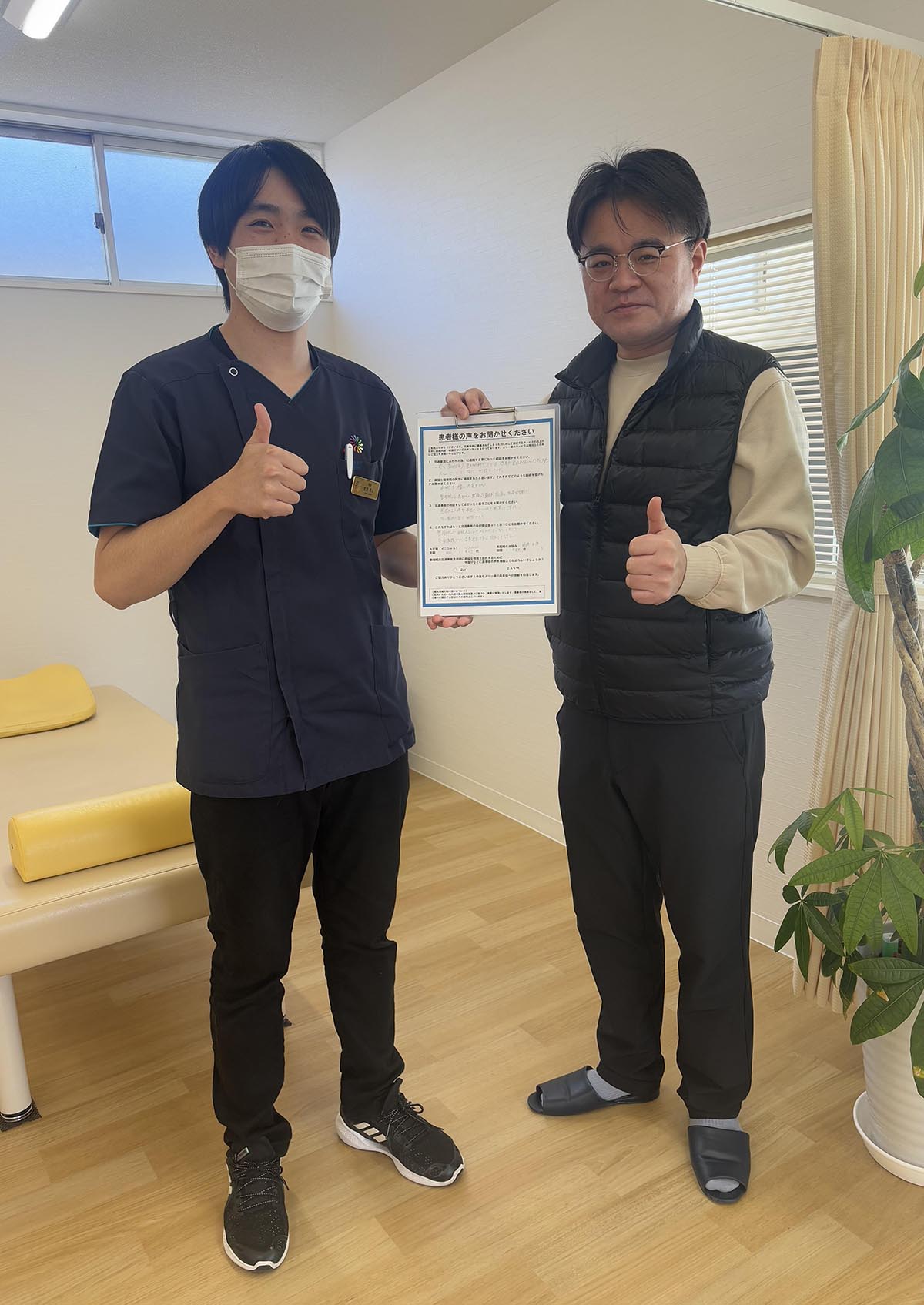 痛みに対する施術も良くて、身体が楽になったのもありますが、自分でできる日常のメンテナンスも教えていただいたので、これからも続けていこうと思います。