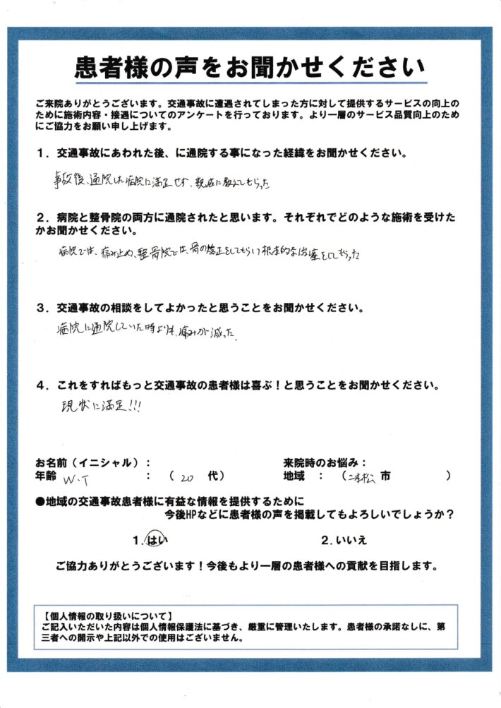 交通事故後、通院した病院に満足せず、親戚に教えてもらった。